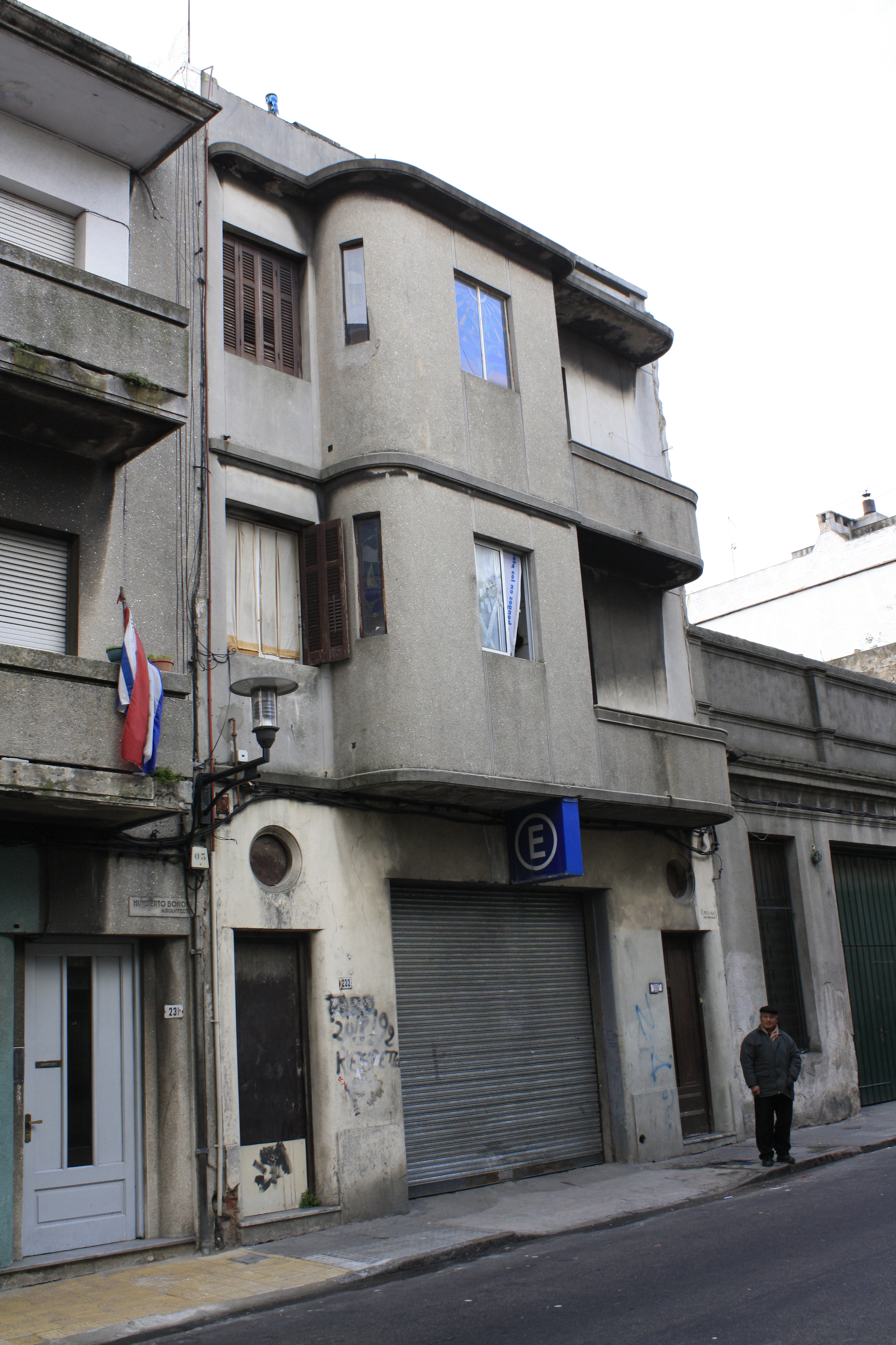 Edificio de tres niveles, construido en torno a 1940, ubicado sobre la calle Cerrito. Se desarrolla en planta baja y dos niveles superiores de acceso diferenciado desde la vía pública. La planta baja alberga un estacionamiento colectivo en tanto se aloja una vivienda en cada nivel superior. La vivienda en su último nivel se organiza en torno a un patio de claraboya.