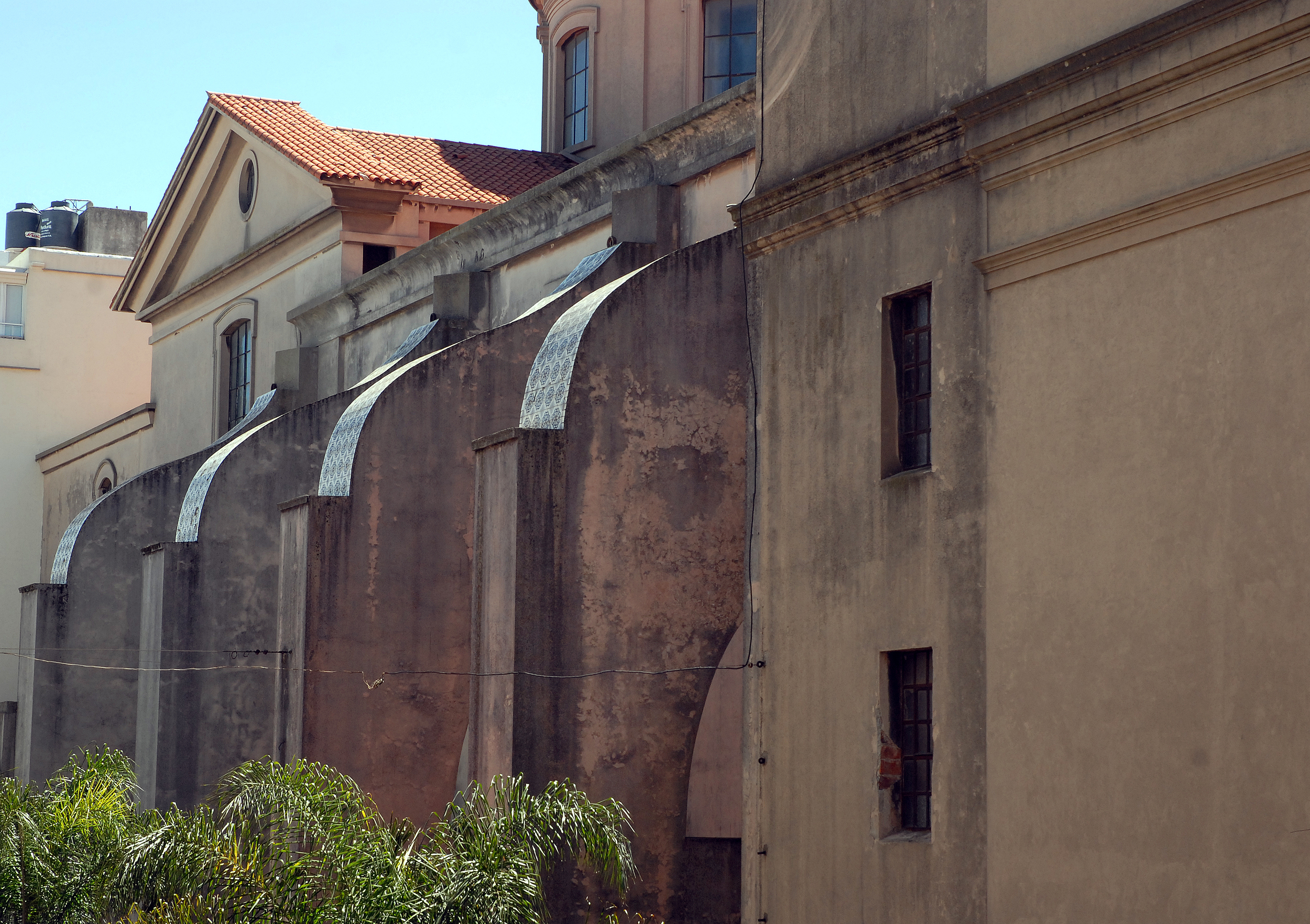 | Arquitectónica: | Por una parte, esta serie de huecos valorizan la volumetría de la Catedral, pero interrumpen la continuidad de comercios sobre Sarandí. |