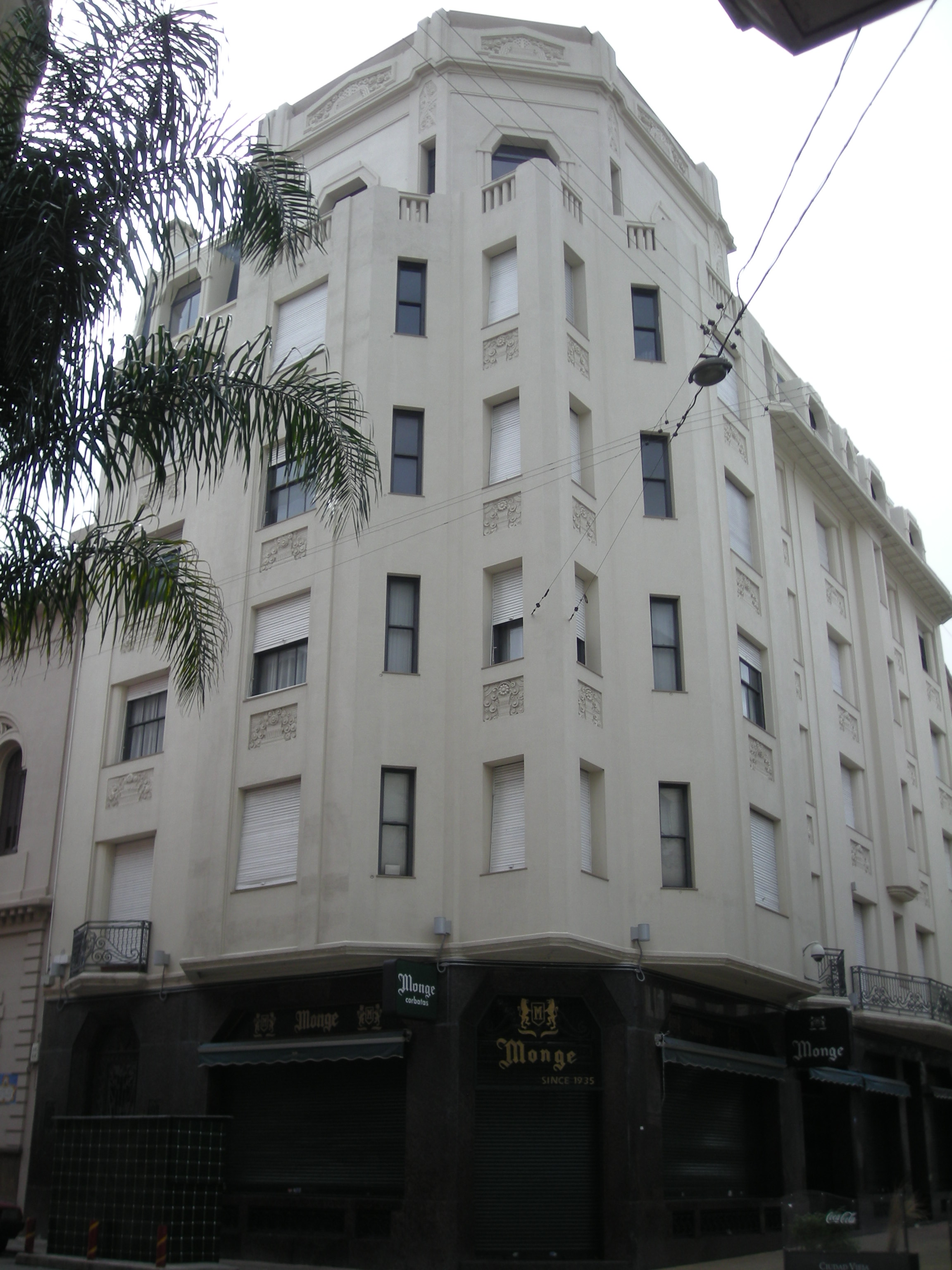 Edificio de renta con base comercial construido en la década de 1930. Su expresión se inscribe dentro de una de las variantes del Art Déco más utilizadas en nuestro medio. El austero basamento de granito establece un contrapunto con los niveles superiores donde se observa un tratamiento más elaborado y con mayor peso ornamental. Se destacan los detalles de herrería, los rectángulos decorados asociados a las ventanas, así como el tratamiento del acceso y los vitrales que iluminan el núcleo de la circulación vertical. El edificio se conserva en buen estado.