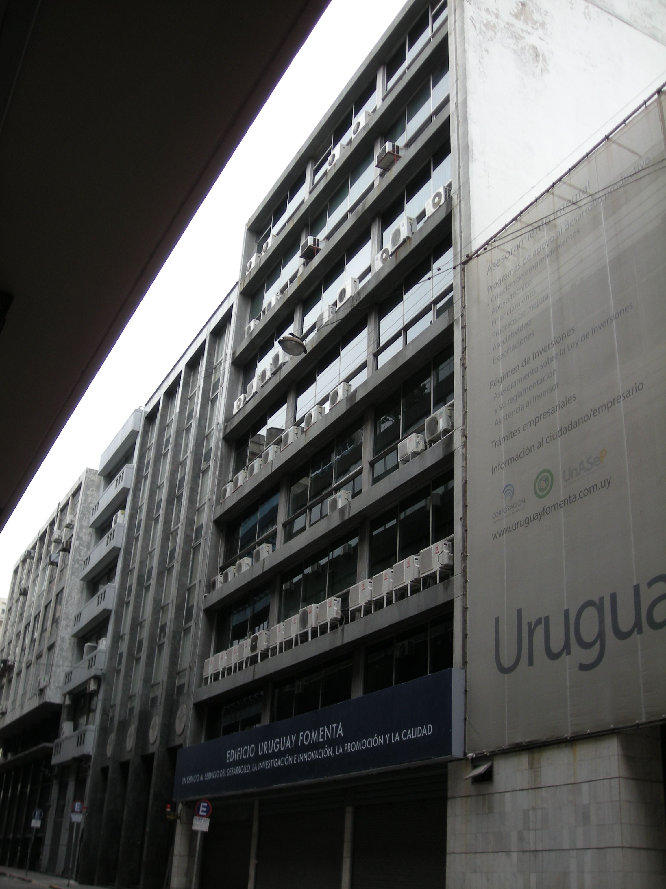 Ejemplo de edificio de propiedad horizontal construido en la década de 1980, para uso de oficinas. Alberga estacionamiento en subsuelo y oficinas en los siete niveles superiores. La fachada utiliza un lenguaje emparentado con las tendencias del estilo internacional, manejando un tratamiento vidriado uniforme en toda su altura, alternado con elementos de chapa. El edificio ha sido reformado en la última década y su estado de conservación es bueno. Forma parte de un sector de la Ciudad Vieja con claro perfil financiero, ubicándose en una cuadra donde coexisten edificios de similar lenguaje y estructura tipológica.