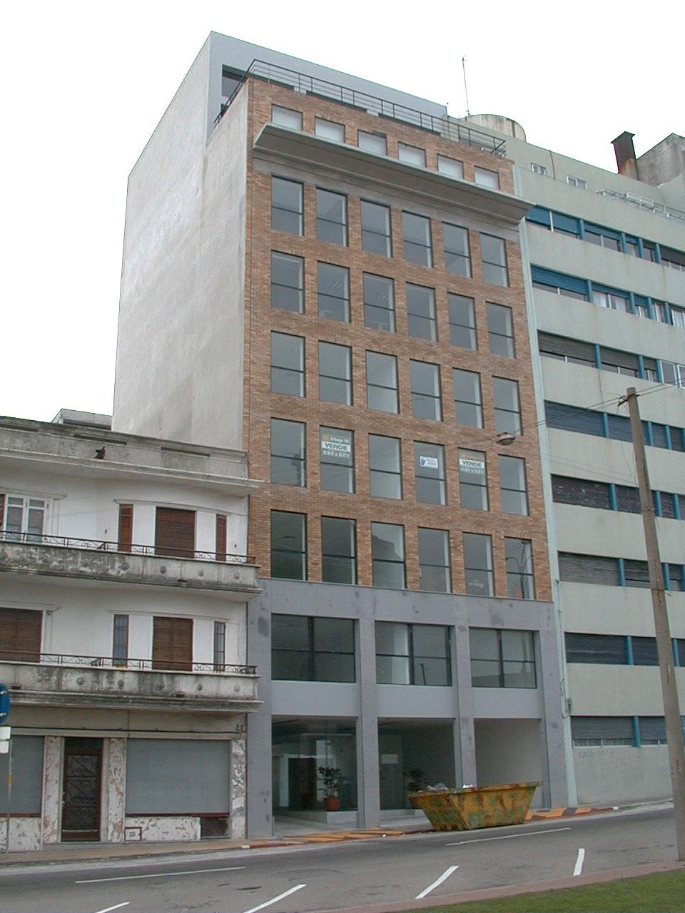 Edificio de propiedad horizontal construido a fines de la década de 1990. En sus ocho niveles y 'pent house', se desarrollan unidades de oficina. Al fondo del predio, separado por un patio se levanta una construcción independiente de siete niveles para estacionamiento. Su fachada se organiza con la repetición de pequeñas aberturas, que modifican sus proporciones para diferenciar una planta baja y primer nivel; y un nivel superior, a modo de remate, donde aparece una importante cornisa. Retira de la línea de fachada el último nivel, para formar la terraza del pent house, alineándose con su lindero. Forma parte de un entorno discontinuo por la alternancia de edificación baja y en altura.