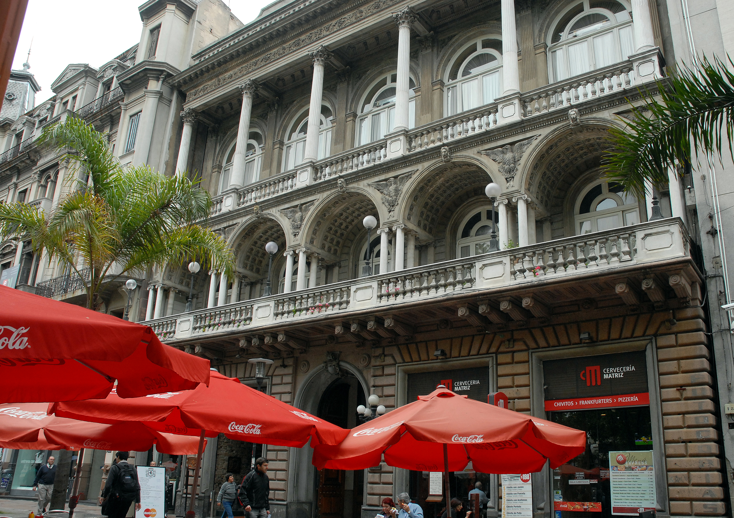 Edificio construido de 1885 a 1888 para la sede del Club Uruguay, fusión del Club Libertad y del Casino de Comercio. Situado frente a la plaza Matriz, se desarrolla en planta baja y dos niveles altos. La planta baja alberga el acceso principal y una serie de espacios comerciales con frente a la Plaza Matriz. En el primer piso se alojan diversas salas de uso propio de la institución y de administración, en tanto el último nivel está parcialmente ocupado por el salón de fiestas. Estilísticamente, el edificio suscribe los lineamientos del eclecticismo historicista.