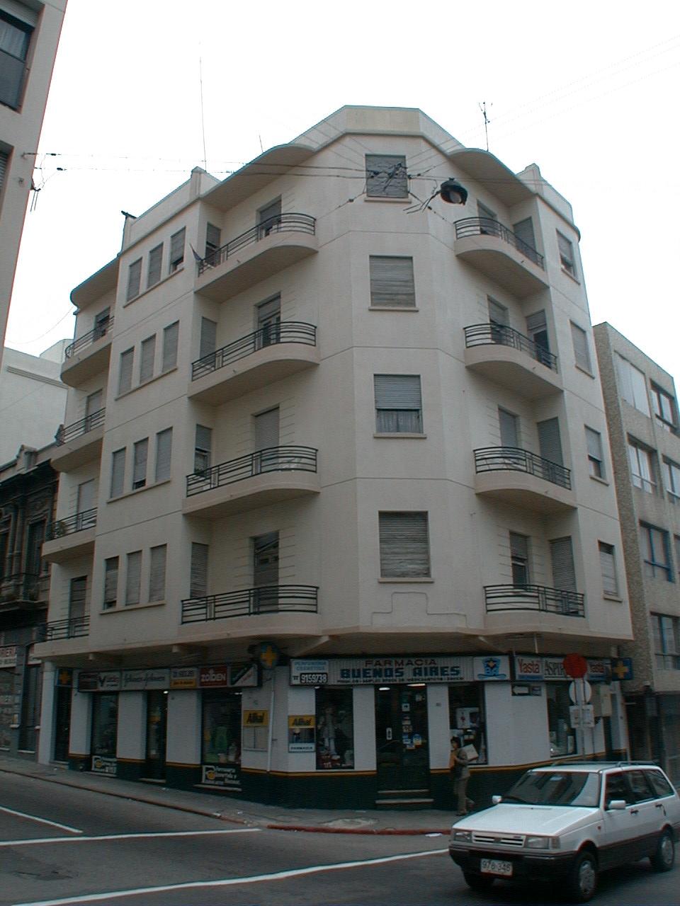 Muy buena resolución de esquina, manteniendo alineación y altura predominante por Ituzaingo. Se integra correctamente al entorno. Altura muy superior a su lindero este.