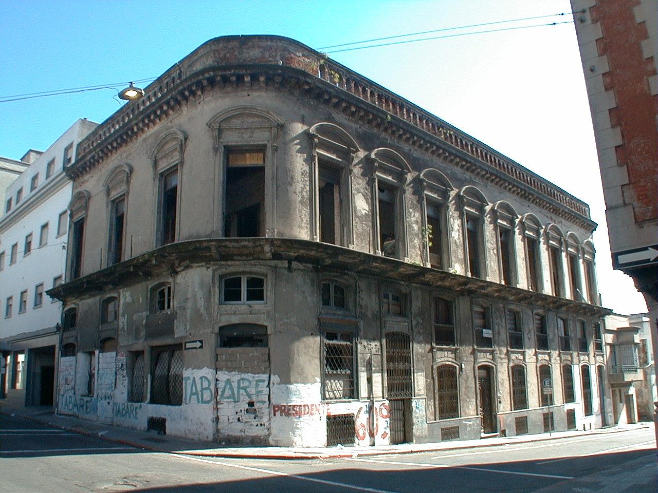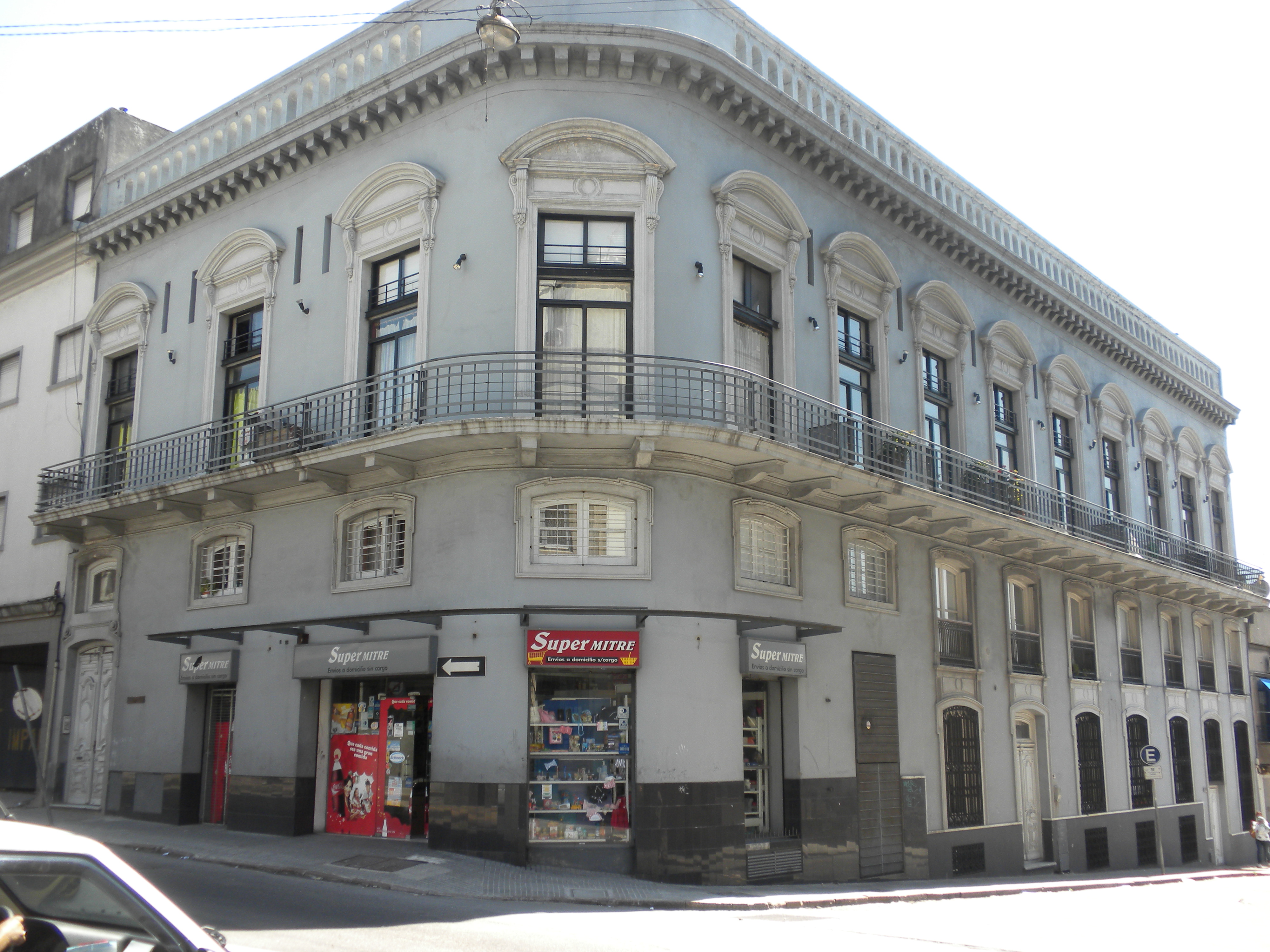 Edificio en esquina construido a fines del siglo XIX, desarrollado en dos niveles con entrepiso. Habiendo sido utilizado como pensión, se presume albergaba originalmente un local comercial y tres viviendas con acceso independiente. Su fachada, de lineamientos eclécticos, presenta un basamento que incluye la planta baja y el entrepiso, que absorbe un fuerte desnivel sobre Bartolomé Mitre. En la planta alta con aberturas coronadas por frontones curvos, destaca el balcón continuo - cuya baranda original se ha perdido - y la potente cornisa con balaustres. El edificio sufrió múltiples e inadecuadas alteraciones de fachada, principalmente en los vanos de la planta baja. Luego de un largo período caracterizado por el abandono y el saqueo fue reciclado en la década del 2000. Actualmente alberga apartamentos y un local comercial en planta baja. Se encuentra en buen estado de conservación.
