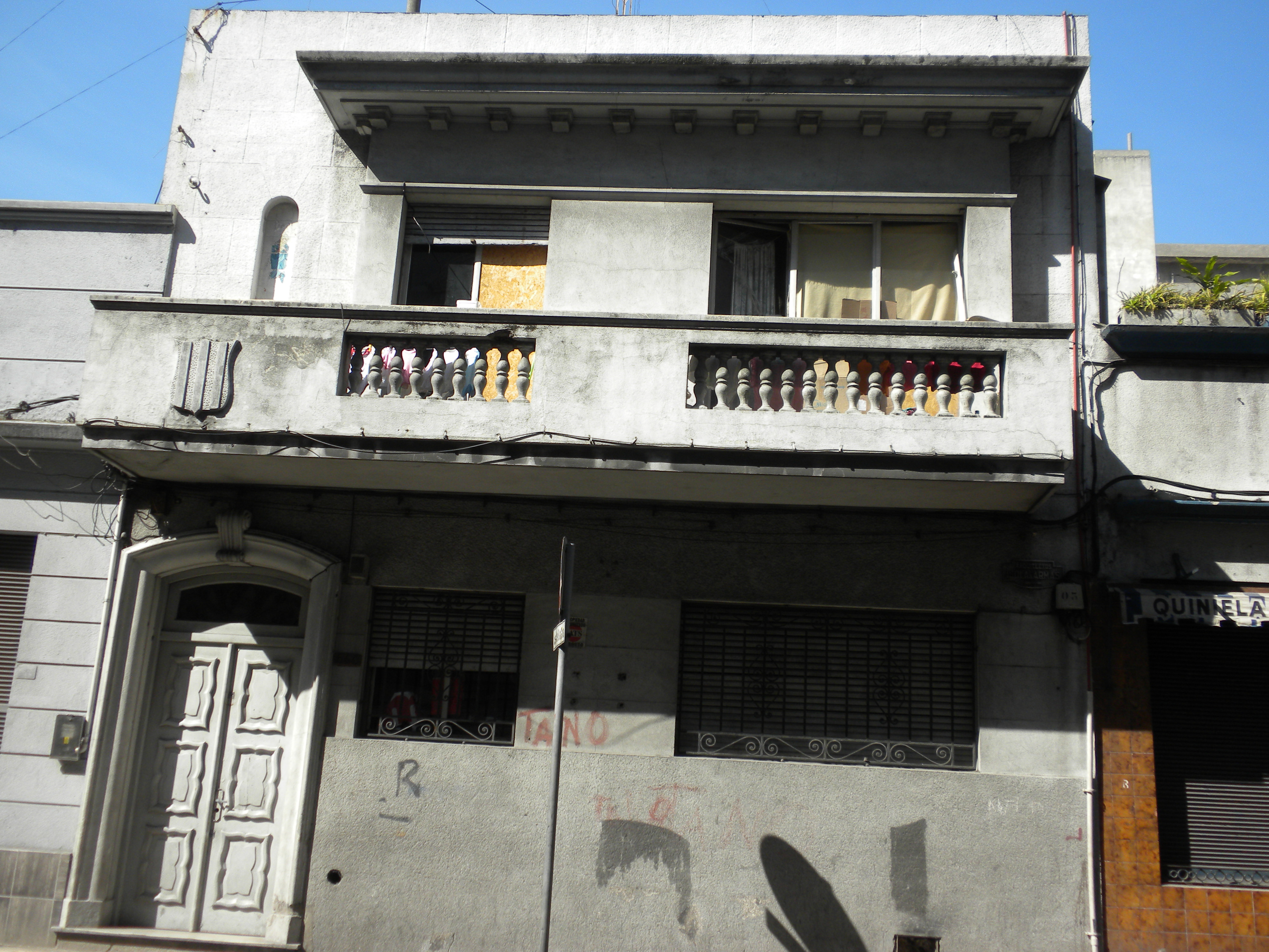 Edificio construido en la década de 1940. Se desarrolla en dos niveles, destinados a vivienda unifamiliar. Presenta una fachada asimétrica con un balcón de mampostería que ocupa todo el frente y una cornisa que cubre un volumen saliente con las aberturas en planta alta. Sin valores destacables, integra un entorno heterogéneo en el que coexisten arquitecturas de diferente formalización. Su fachada se conserva en buen estado.