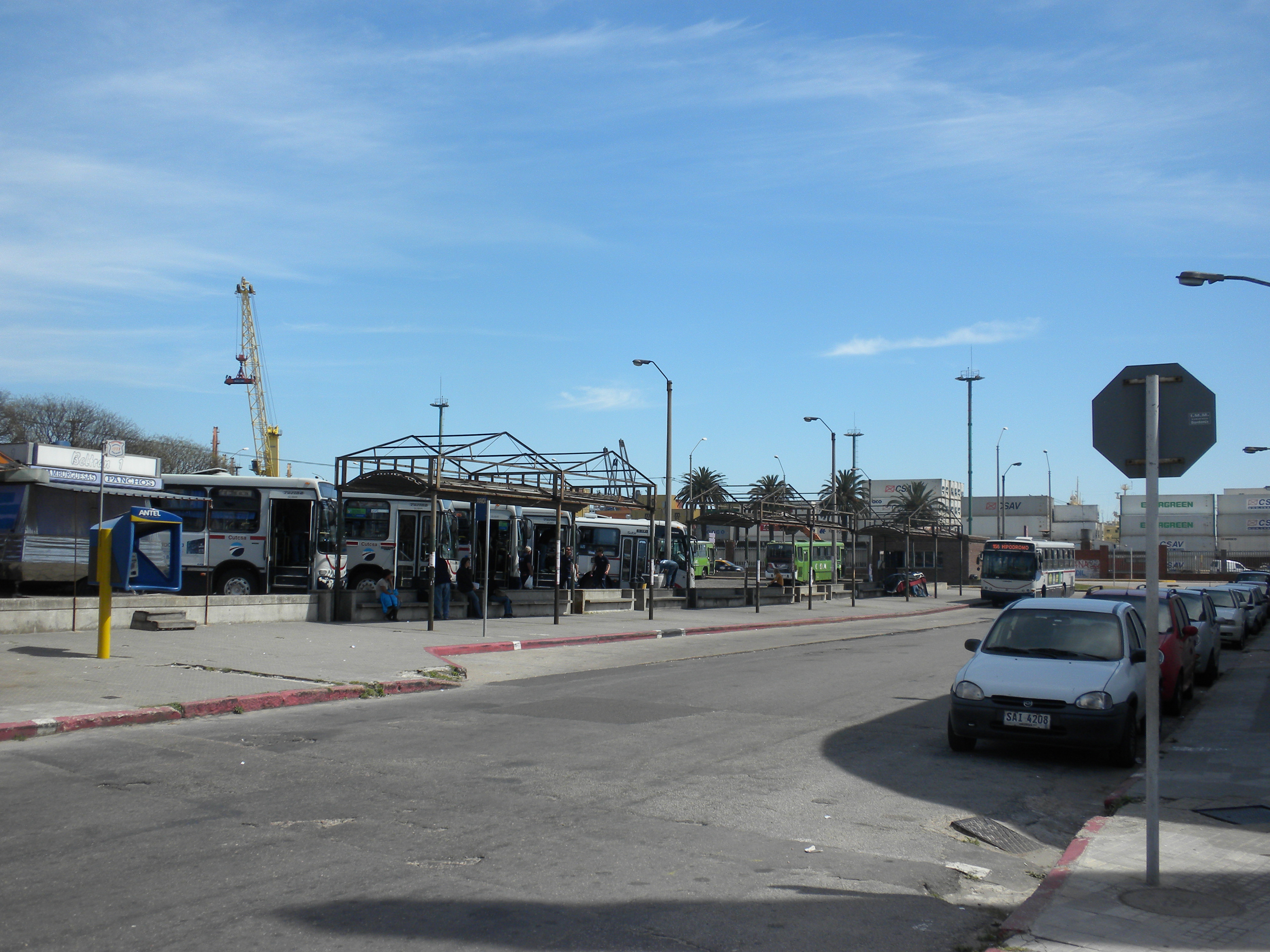 Predio utilizado como parte de una terminal de ómnibus capitalinos. Cuenta con una gran explanada al aire libre de pavimento de adoquines de granito, una casetas de un nivel resvestida en ladrillo sobre las esquina de la calle juncal y la Rambla (hay otra caseta idéntica pero está por fuera del padrón) y una serie de construcciones ligeras sobre la vereda a modo de refugios peatonales (paradas de ómnibus).