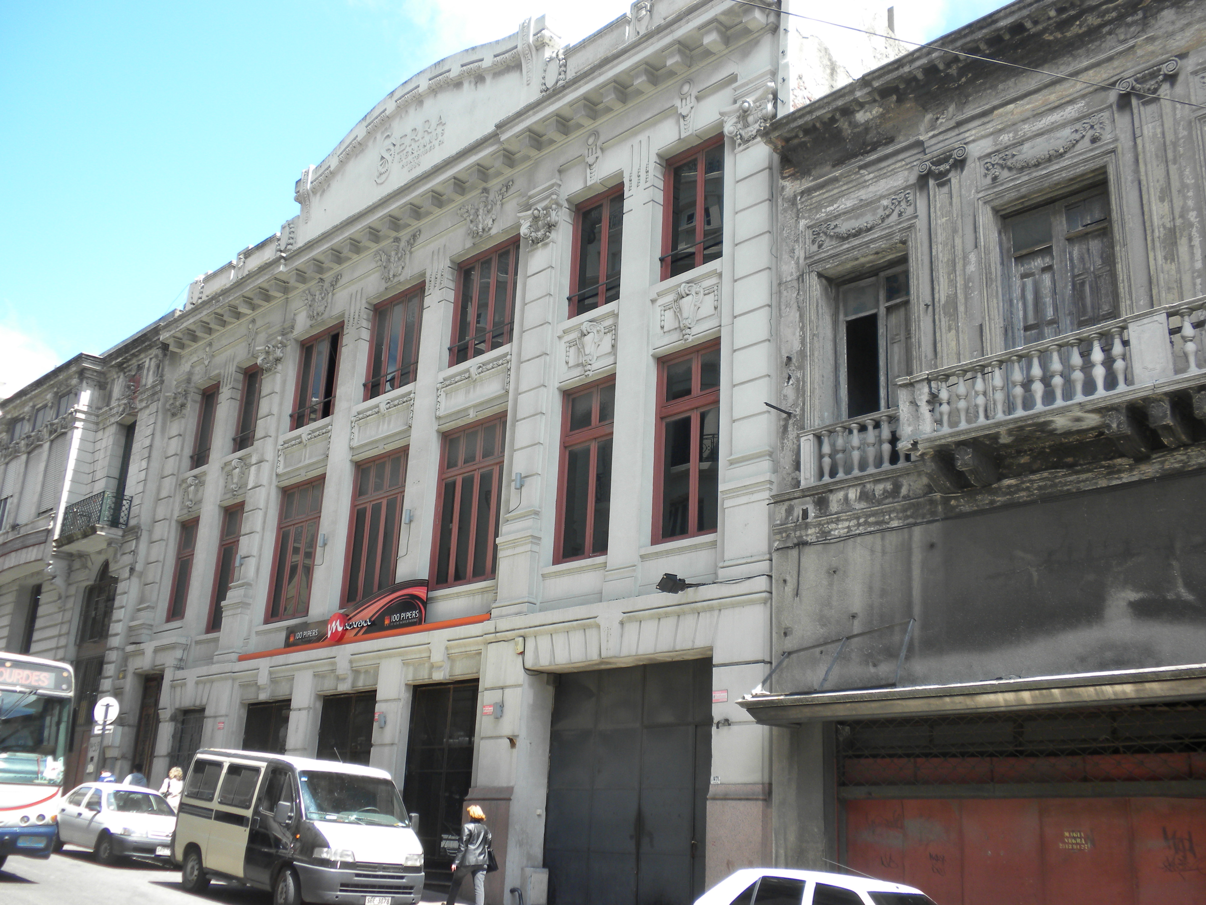 Edificio comercial de la firma Serra Hnos. construido a principios del siglo XX. Posee en su fachada una concepción tripartita característica de este tipo de construcciones, con planta baja (basamento), un cuerpo de dos niveles y una cornisa y pretil como remate. Al mismo tiempo, se divide en una serie de paños verticales que alternan vanos y pilastras. Su lenguaje se adscribe al eclecticismo dominante en la época. La fachada del edificio se encuentra en muy buen estado de conservación.