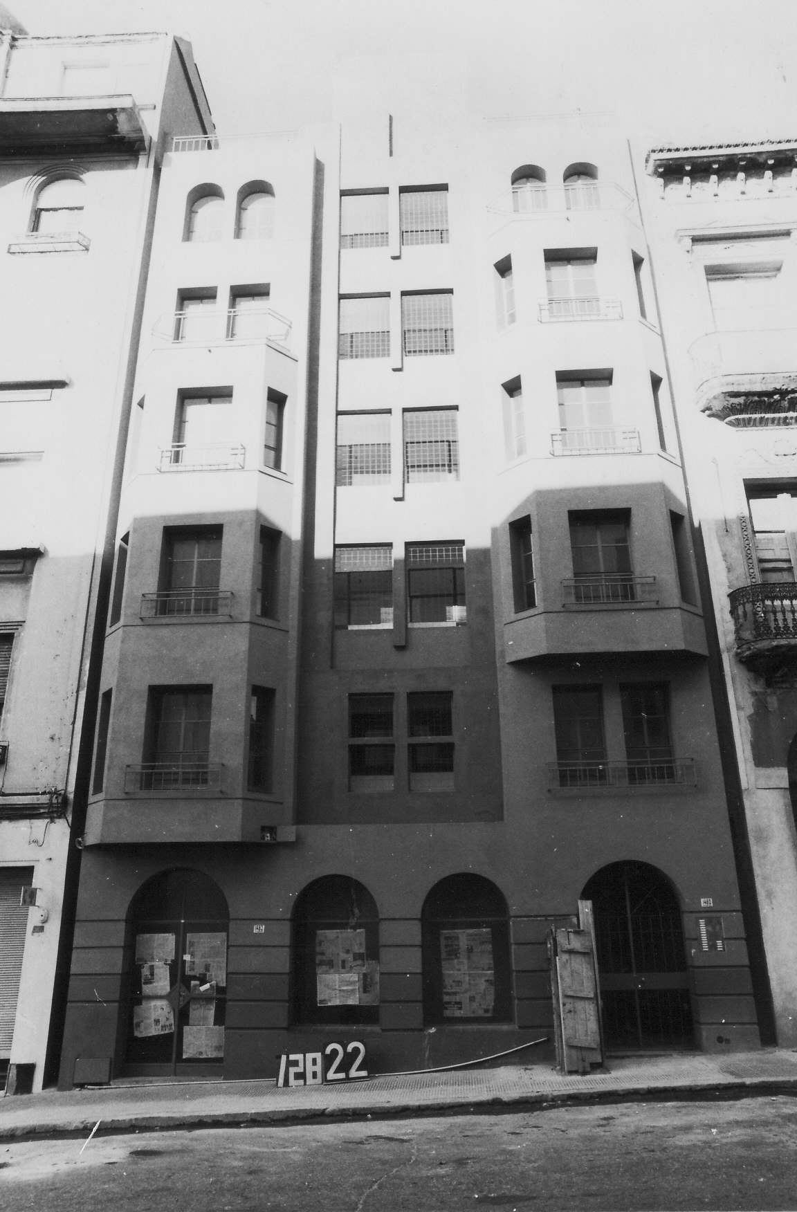 Edificio construido en 1989. Se desarrolla en seis niveles ocupando el frente y fondo de la parcela, con un patio interior. La fachada procura interpretar en lenguaje contemporáneo los elementos formales del entorno, siendo ejemplo del denominado "contextualismo", un modo de operar con cierto consenso en los años en que se realiza la obra. Presenta dos volúmenes salientes en los laterales de las plantas altas, una planta baja con una sucesión de vanos con arcos de medio punto y un remate con pretil de baranda de hierro y paño ligeramente triangular en el centro. Se encuentra en buen estado de conservación aunque evidencia la falta de mantenimiento y la baja calidad de sus terminaciones.