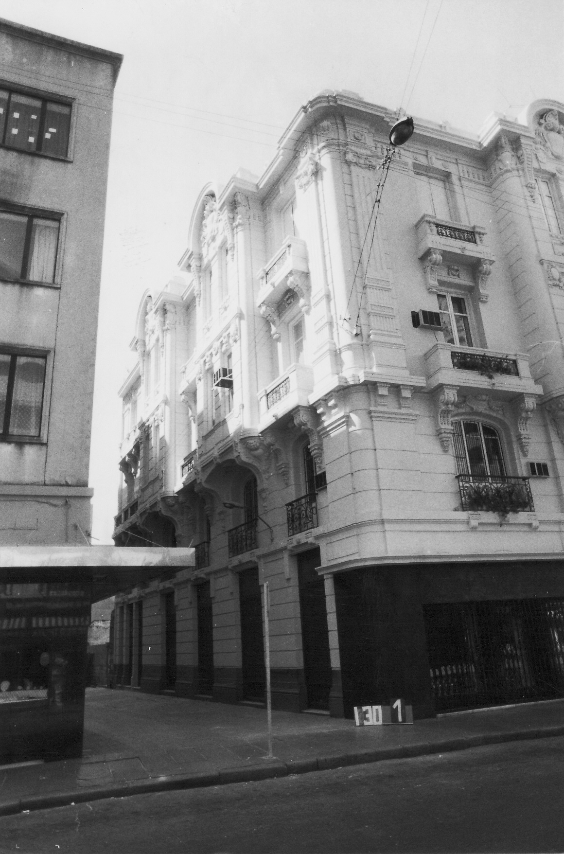 | 3.14 Observaciones: | 3.4- Planta baja: farmacía y galería de arte (galería "Latina"). Entrepiso y plantas altas desocupadas con excepción de la vivienda del portero del edificio. 3.6- Fue eliminado el remate en mansarda sobre la calle Sarandí en fecha sin determinar. 3.10 y 3.11- Figura como el técnico del Permiso de Construcción. |