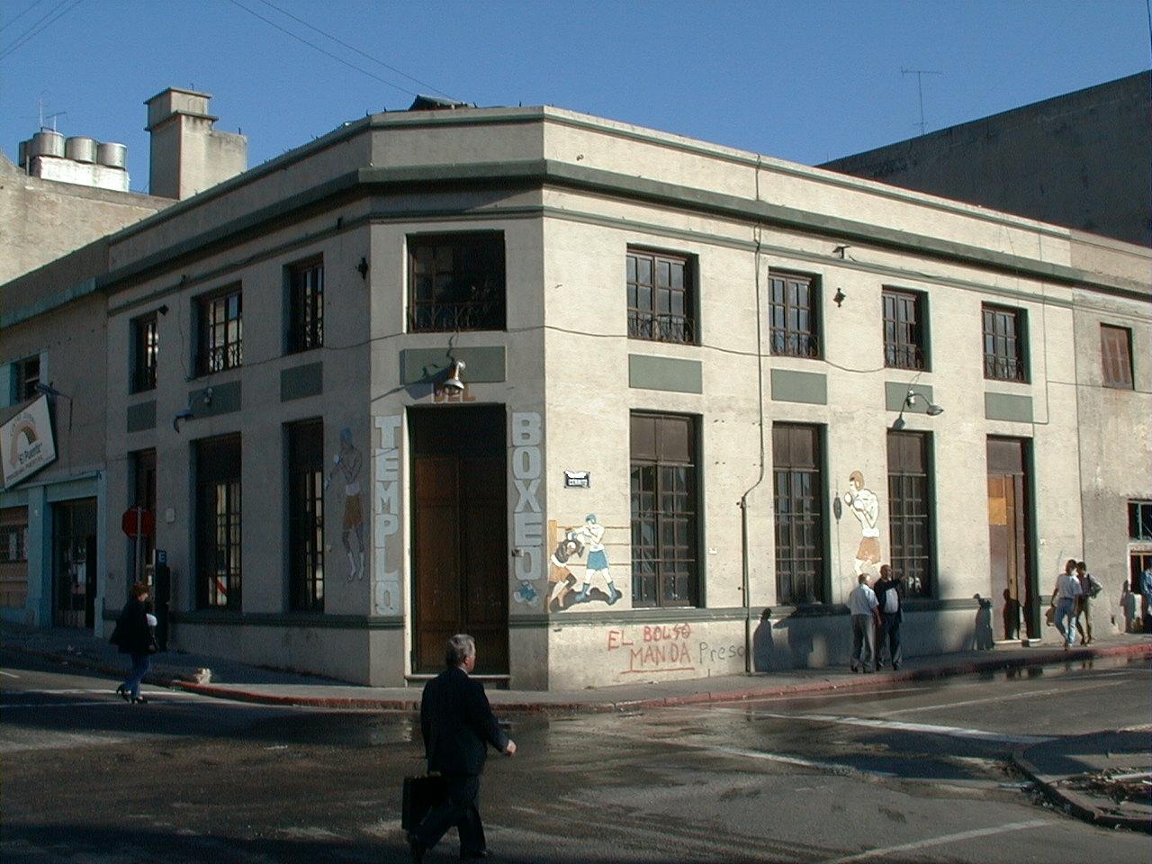 Edificio en esquina construido a principios del siglo XX, que originalmente destinado a vivienda con planta baja comercial. Actualmente se desarrolla básicamente en un nivel: un gran espacio libre con cubierta liviana destinado a la práctica del boxeo. Sobre la fachada de la calle Cerrito posee un entrepiso liviano de estructura de hierro fundido y piso de madera. La fachada presenta, hacia ambas calles, una sucesión de aberturas rectangulares que se corresponden en planta baja y lo que originalmente era la planta alta, y cuya composición remata en una cornisa y pretil de mampostería. En la esquina ochavada se encuentra el acceso principal. El estado de conservación del edificio es regular en su interior y bueno en su fachada.