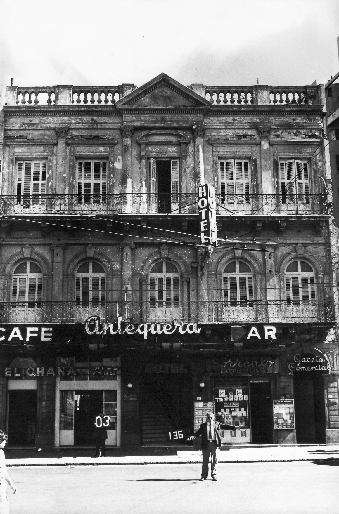 Edificio construido a fines del siglo XIX. Es uno de los pocos edificios de esta época que aún se conservan sobre la Plaza Independencia. Se desarrolla en tres niveles y subsuelo. Es difícil determinar su uso original pero pudo estar destinado a un gran comercio en planta baja y subsuelo y a hotel sus plantas altas. En 2006-2007 se realizó un reciclaje del edificio. Actualmente posee dos locales comerciales (uno de ellos desocupado) mientras que las plantas altas funciona un hostal. El edificio cuenta con múltiples elementos de significación, principalmente su distribución interna que genera un patio central con claraboya. Su fachada maneja una composición clásica, jerarquizando un eje de simetría central por un frontón triangular flanqueado por pilastras corintias en el segundo piso y dóricas en el primero. Se encuentra en buen estado de conservación.