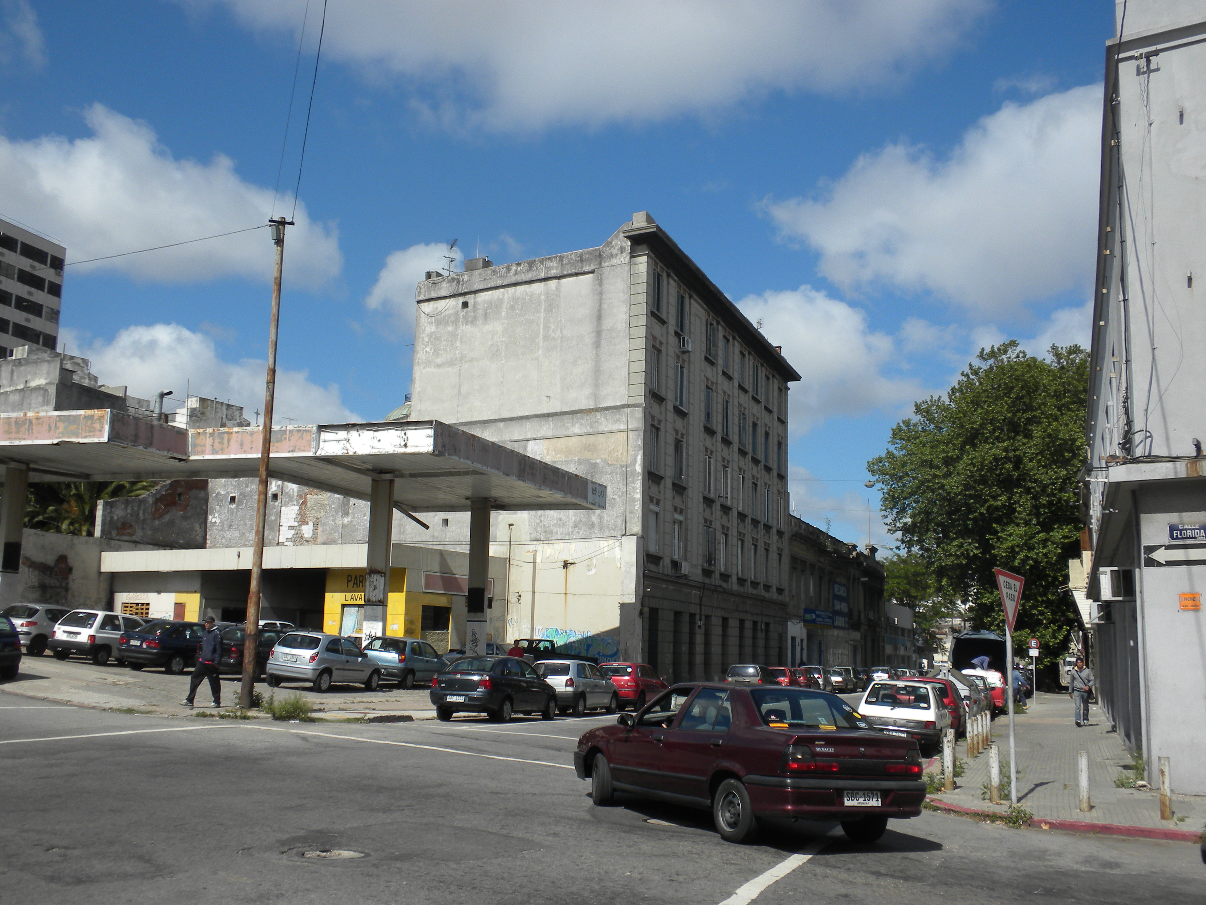 Estación de servicio construida en 1985, ubicada en un predio en esquina, producto de la unificación de cuatro padrones. El predio fue generado después de la demolición de las edificaciones correspondientes, una vez desafectadas como Monumento Histórico Nacional. Presenta una construcción con techo liviano en forma de zig-zag que ocupa el centro de padrón y una construcción de baja altura recostada sobre las medianeras Oeste y Sur. Actualmente funciona un parking, encontrándose en regular estado de conservación.