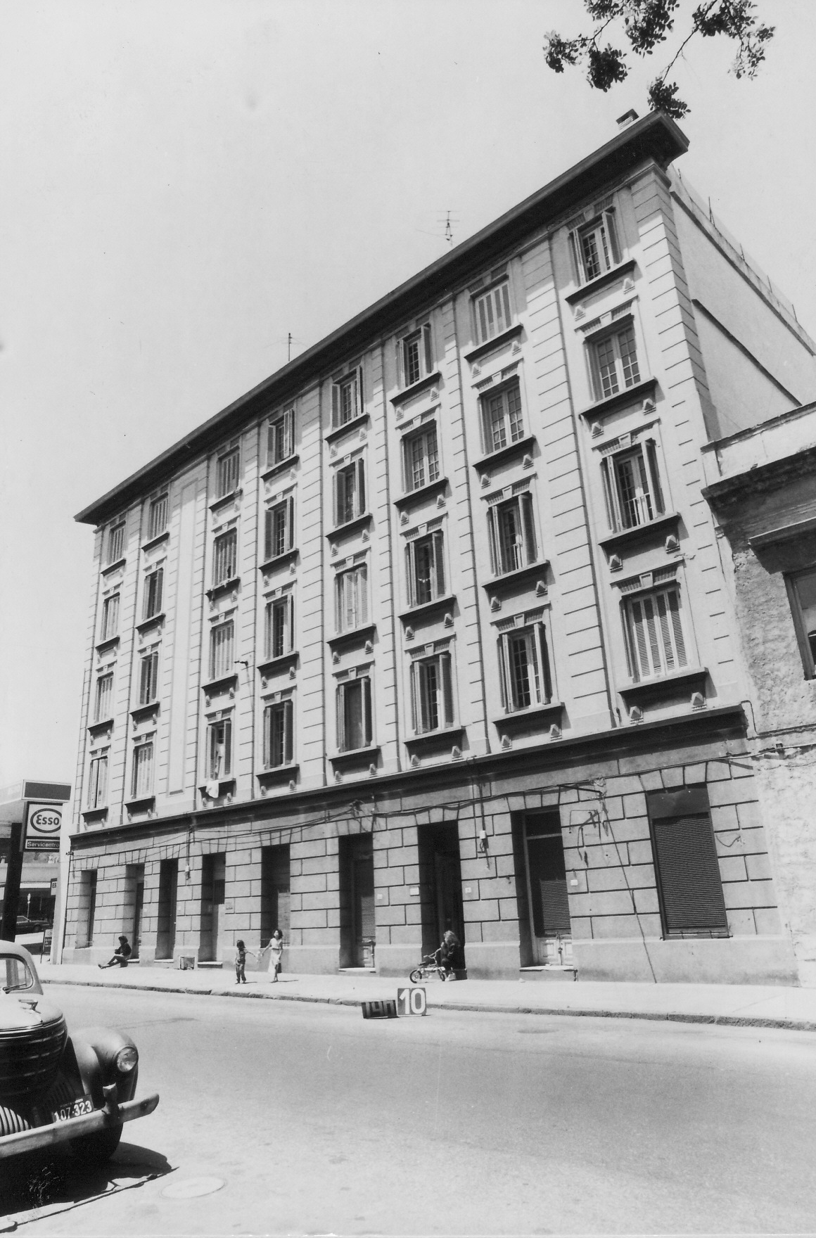 Edificio de vivienda construido en torno a 1920. Se estructura en dos bloques en torno a patios de aire y luz. Un bloque al frente con cuatro niveles y planta baja y un bloque posterior de dos niveles. El volumen frontal tiene tres locales comerciales, uno de los cuales se encuentra desocupado. La fachada presenta una planta baja en forma de basamento con almohadillado, y un desarrollo ritmado por la repetición de las aberturas, rematando en una cornisa. Se encuentra en buen estado de conservación.