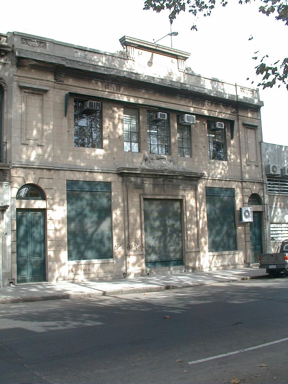Edificio de dos niveles construido presumiblemente en la segunda mitad del siglo XIX para uso industrial. Actualmente se encuentra conectado con el padrón lindero 4837 y funciona como depósito de una empresa que importa artículos del rubro ferretería. Su fachada, simétrica, fruto de una importante intervención en la década de 1920, dispone sobre el eje central el acceso principal, enmarcado y reafirmado por una pequeña cornisa. La planta alta presenta una serie de vanos rectangulares y es rematada por un cambio en la altura del pretil. Se encuentra en buen estado de conservación.
