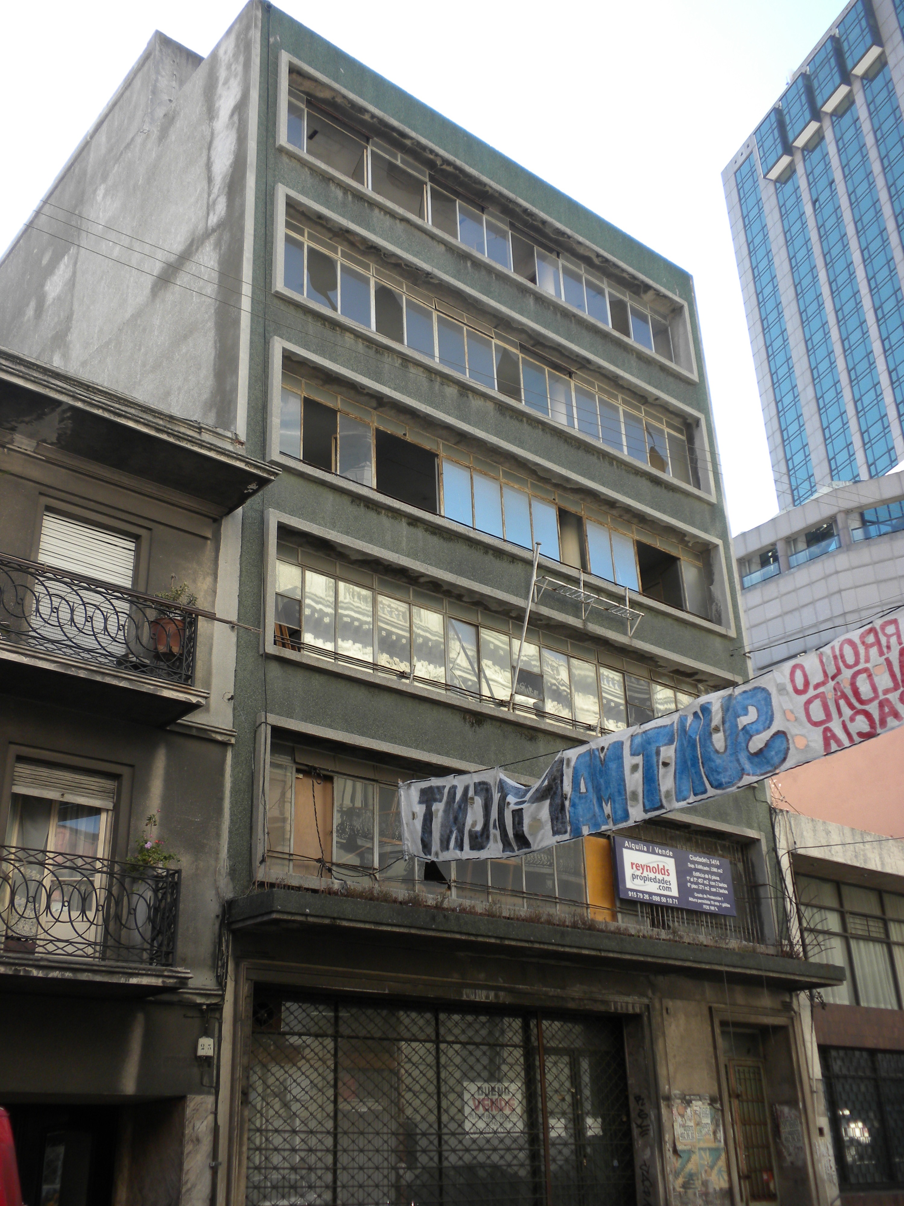 | 4.7. Observaciones: | 4.5- Falta de vidrios en aberturas, no obstante no ha llegado aún a un deterioro tal que lo ubique en estado "regular". 4.5 y 4.6- No se pudo ingresar al interior del edificio. 4.6- Según I´2000: eliminación de tabiques interiores para ampliar oficinas. |