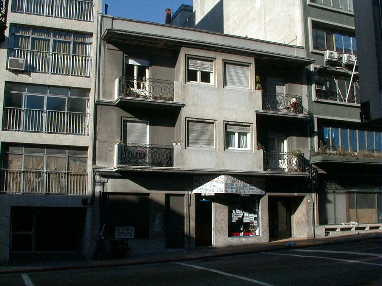 | Urbanística: | El edificio mantiene la alineación general pero contrasta por su menor altura con ambos linderos. No obstante se integra discretamente en un tramo heterogéneo en altura y lenguajes. |