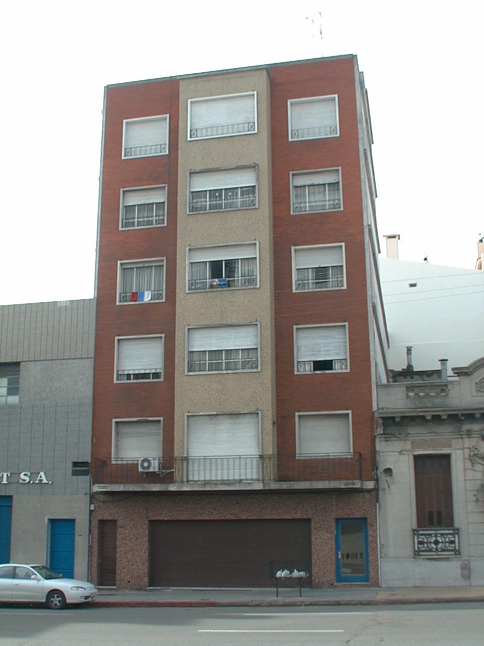 Edificio de propiedad horizontal construido en la década del ’60. Se desarrolla en seis niveles originalmente destinados a vivienda con planta baja comercial. Actualmente el uso residencial es compartido con oficinas y el local comercial se encuentra desocupado. La fachada de ladrillo visto presenta como único elemento compositivo un volumen saliente central, que al igual que la planta baja posee revestimiento de plaqueta de gres de distintos colores y tonos. Su estado de conservación es bueno.