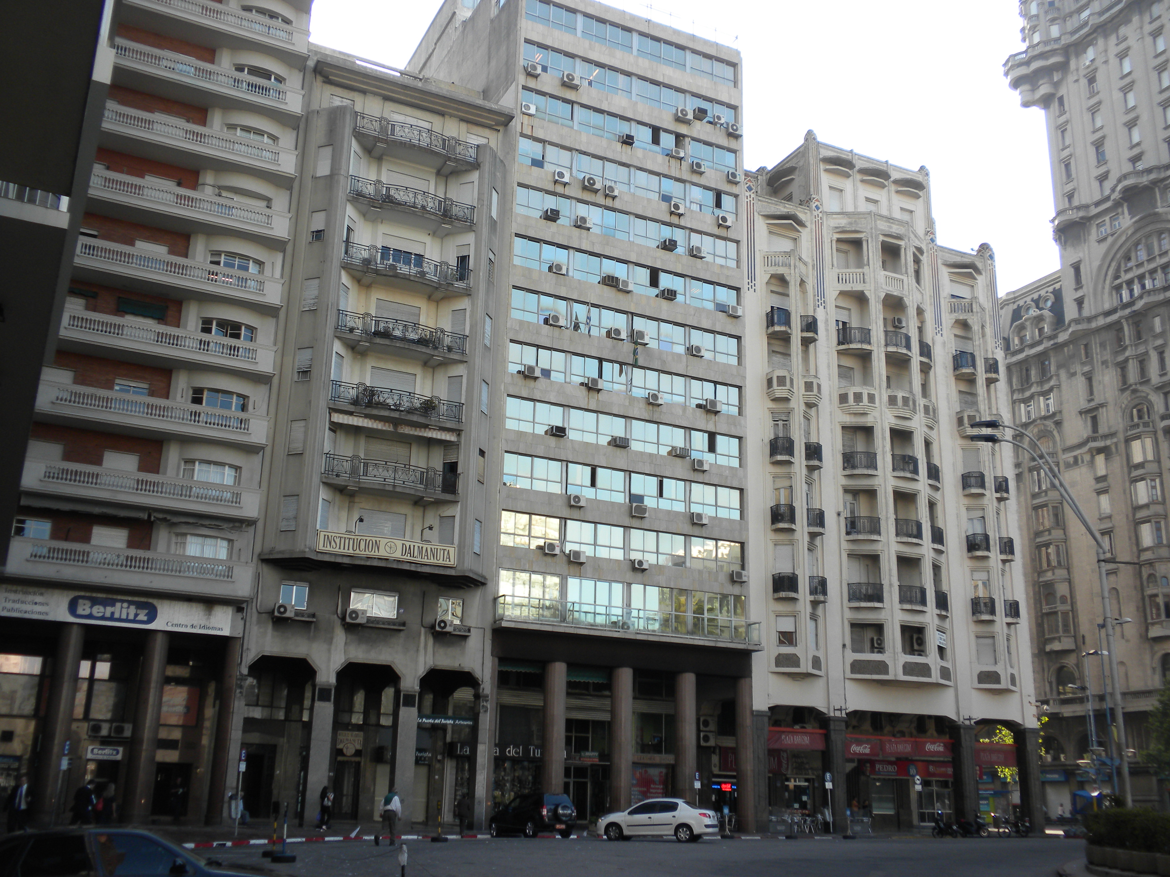 | Urbanística: | Edificio de gran masa. Sobre Plaza Independencia, solución acorde a la normativa en altura y pasiva, aunque un tanto superior a los linderos. En la esquina de 18 de Julio y Andes destaca su gran masa, sobre todo en relación al tramo sobre Andes. Edificio acorde al caracter general de la zona céntrica. |