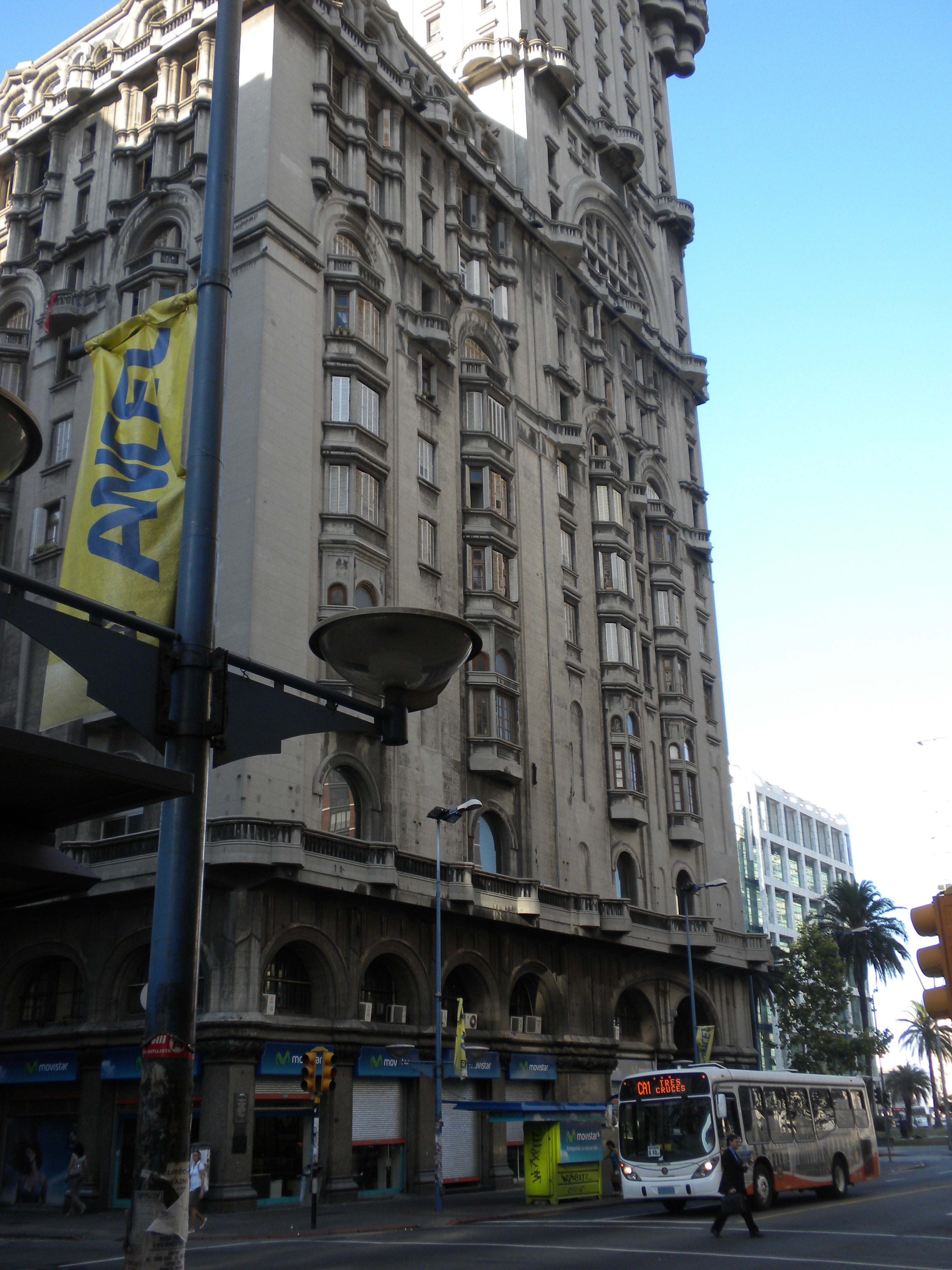 Edificio que jerarquiza la significativa esquina que ocupa, enfrentando la Plaza Independencia y el Palacio Salvo y marcando el comienzo del eje 18 de Julio.