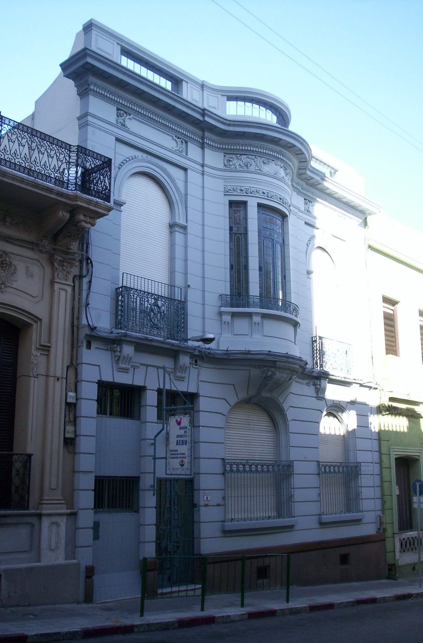 Vivienda unifamiliar desarrollada en dos niveles, construida a principios del siglo XX. En la década de 1980 fue reformada para alojar las instalaciones de la guardería de AEBU. A pesar de las remodelaciones, la fachada conserva su lenguaje original, que alude al eclecticismo de influencia francesa, en la que se destaca el volumen saliente y ondulado de la planta alta. El edificio se encuentra en buen estado de conservación.
