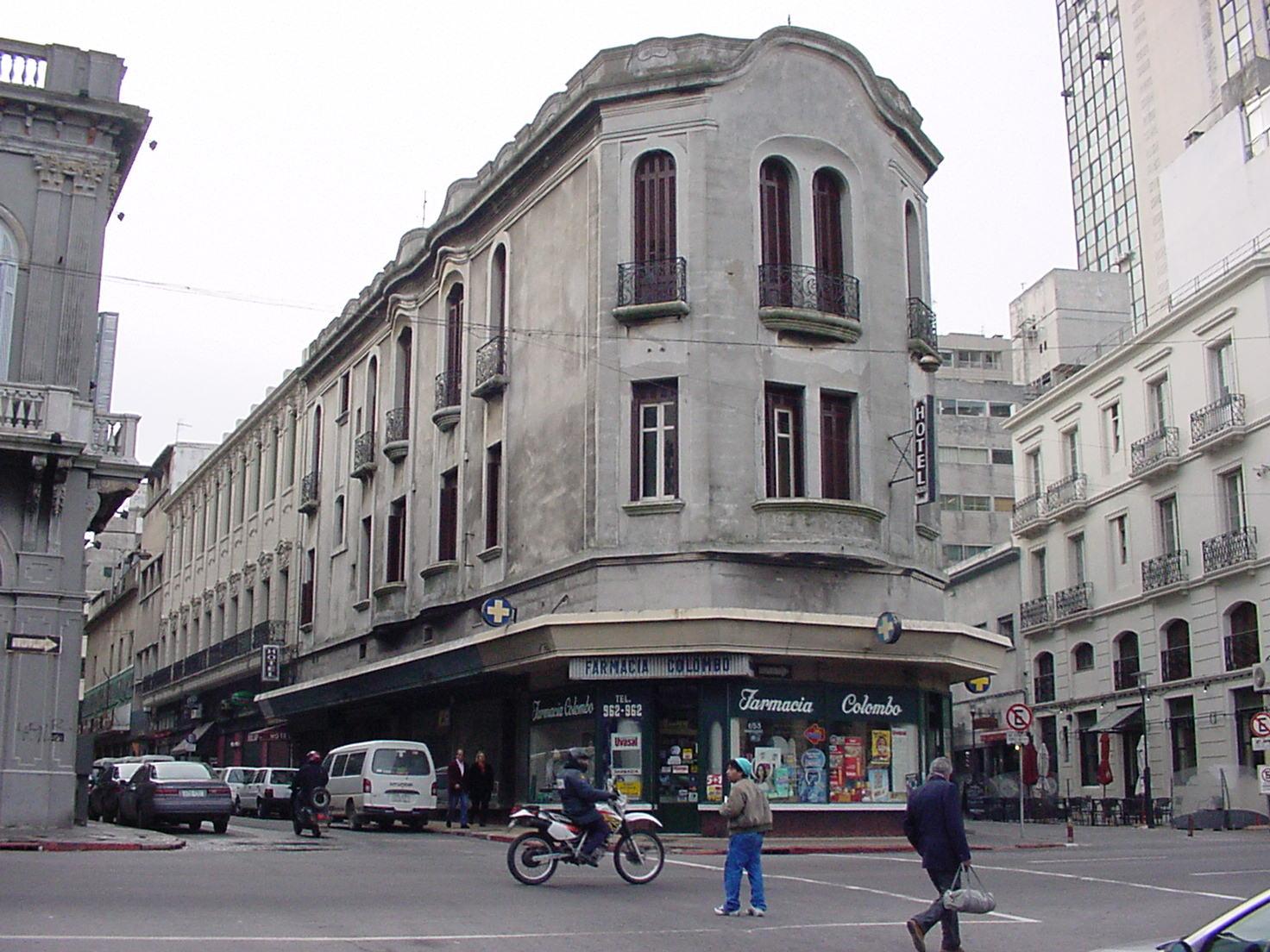 Edificio construido a principios del siglo XX, desarrollado en tres niveles con planta baja comercial. Se ubica en la particular proa que enfrenta el Teatro Solís y el inicio de la peatonal Bacacay. Su fachada de lenguaje ecléctico, se compone por pequeñas aberturas adinteladas y con arco de medio punto, cornisas con movimiento, y balcones. Sin presentar elementos especialmente destacados, su volumetría y lenguaje se integran en un calificado entorno dentro de la Ciudad Vieja, tanto patrimonial como en actividad.
