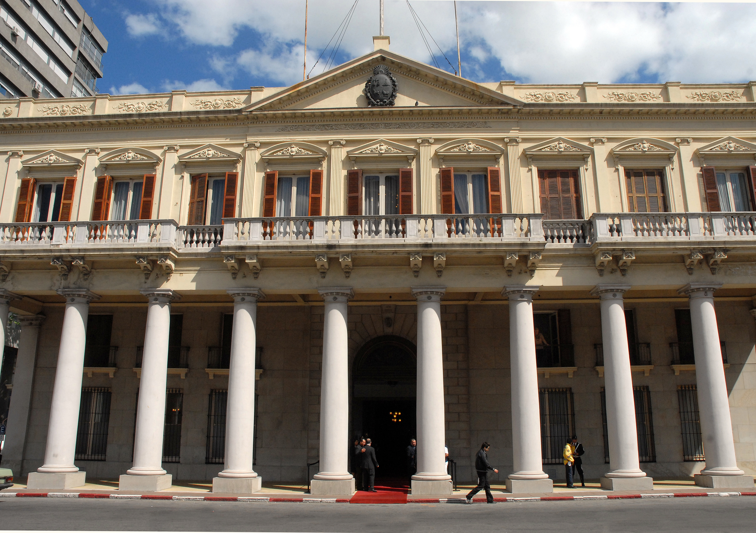 Edificio construido sobre la Plaza Independencia para el comerciante Francisco Estéves que en un principio albergaría la vivienda y locales comerciales. Fue adquirido por el Estado durante el gobierno del Coronel Latorre, actualmente se destina a sede protocolar del gobierno y aloja un museo. El edificio se organiza en torno a un patio central con un acceso ceremonial articulado por dos escalinatas. La intervención del Ing. Capurro enmarca la construcción en un estilo académico neo-clásico. Su lenguaje refiere a los palacios renacentistas italianos. El edificio se adecua a la normativa de pasivas que ordena la plaza mediante la disposición de columnas dóricas en planta baja. En 1987 se realiza una reforma interior que modifica parcialmente la distribución de la planta alta realizada por el artista plástico Espínola Gómez y el Arq. Enrique Benech. Se encuentra en buen estado de conservación, siendo Monumento Histórico Nacional desde 1975.