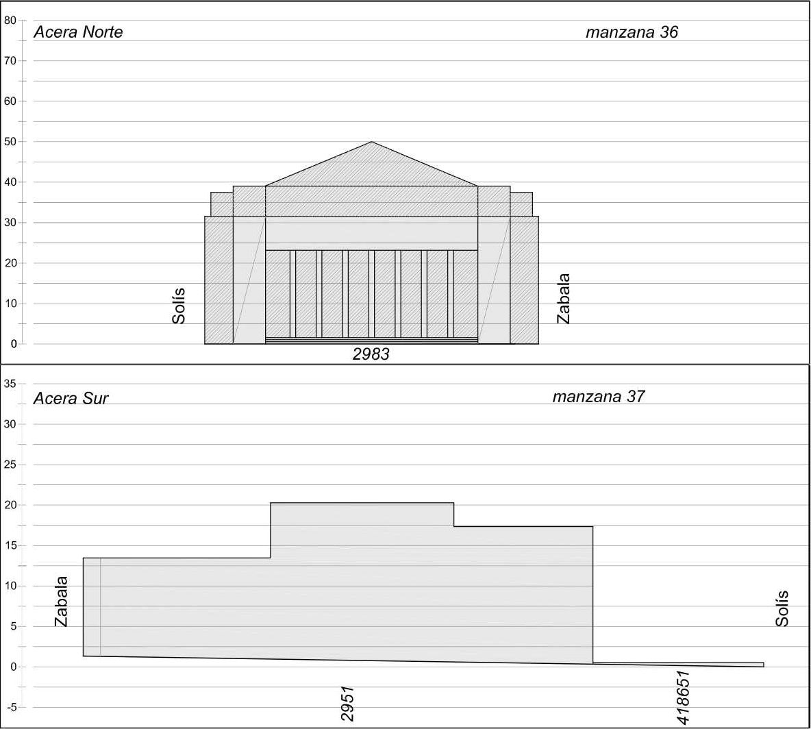 | 5.2 Valoración: | Tramo fuertemente caracterizado por la presencia del edificio central del BROU, de escala monumental, ubicado sobre la acera Norte. La acera Sur a su vez se conforma por los edificios del ex-Banco Comercial, cuya continuidad se interrumpe en la esquina de la calle Solís por la presencia de un baldío de importantes dimensiones. El intenso movimiento peatonal debido a la presencia de casas bancarias, sumado al alto grado de circulación vehicular privada y colectiva genera un dinamismo constante en el tramo. Tanto el borde construido, como el pavimento de las aceras se encuentran en buen estado de conservación. La iglesia de San Francisco de Asís ubicada al Oeste en la esquina del tramo adyacente y el espacio plaza al Este participan de la definición del tramo. La calidad ambiental del tramo se ve alterada por la continua circulación de transporte colectivo con unidades de gran tamaño que generan contaminación sonora y atmosférica, siendo esto mitigado por la presencia de las plazuelas ubicadas en las esquinas de Cerrito y Zabala y Cerrito y Solís respectivamente, requiriendo la segunda de ellas una mejora integral en su pobre diseño y casi inexistente equipamiento. |