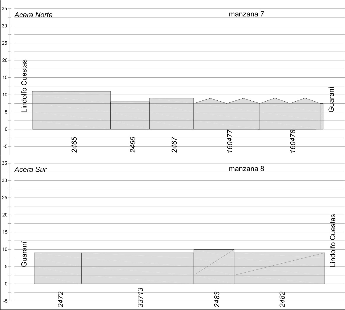 | 5.2 Valoración: | Tramo conformado por construcciones de diversas alturas y lenguajes arquitectónicos que le otorgan un carácter heterogéneo, y que debido a que aportan escasos valores no contribuyen a calificarlo. |