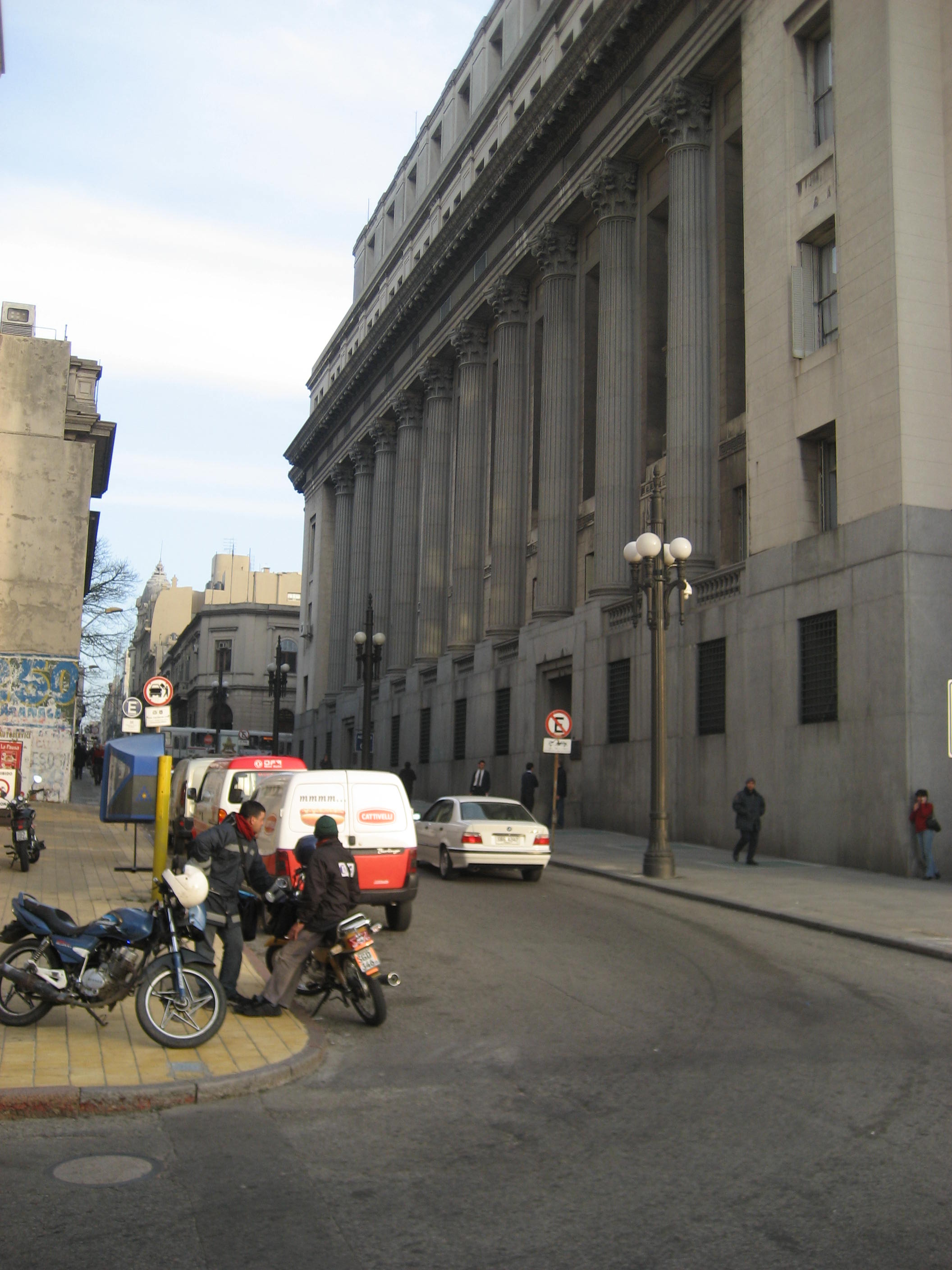 | 5.2 Valoración: | Tramo signado por la masa arquitectónica del BROU, cuya fachada de escala monumental se extiende a lo largo de toda la acera Oeste, caracterizada también por las luminarias de gran porte y diseño historicista, que forman parte de la imagen con que se presenta aquí la entidad financiera. Sobre la acera Este, el borde edilicio es heterogéneo, destacándose el edificio del centro del tramo, que con su fachada caracterizada por su lenguaje ecléctico lleno de recursos clasicistas, avanza respecto de su lindero Norte retirado de la línea de fachada. Una plazuela situada en la esquina de Zabala y Cerrito confiere amplitud visual al lugar, al cual aporta importantes valores ambientales con su equipamiento vegetal. |